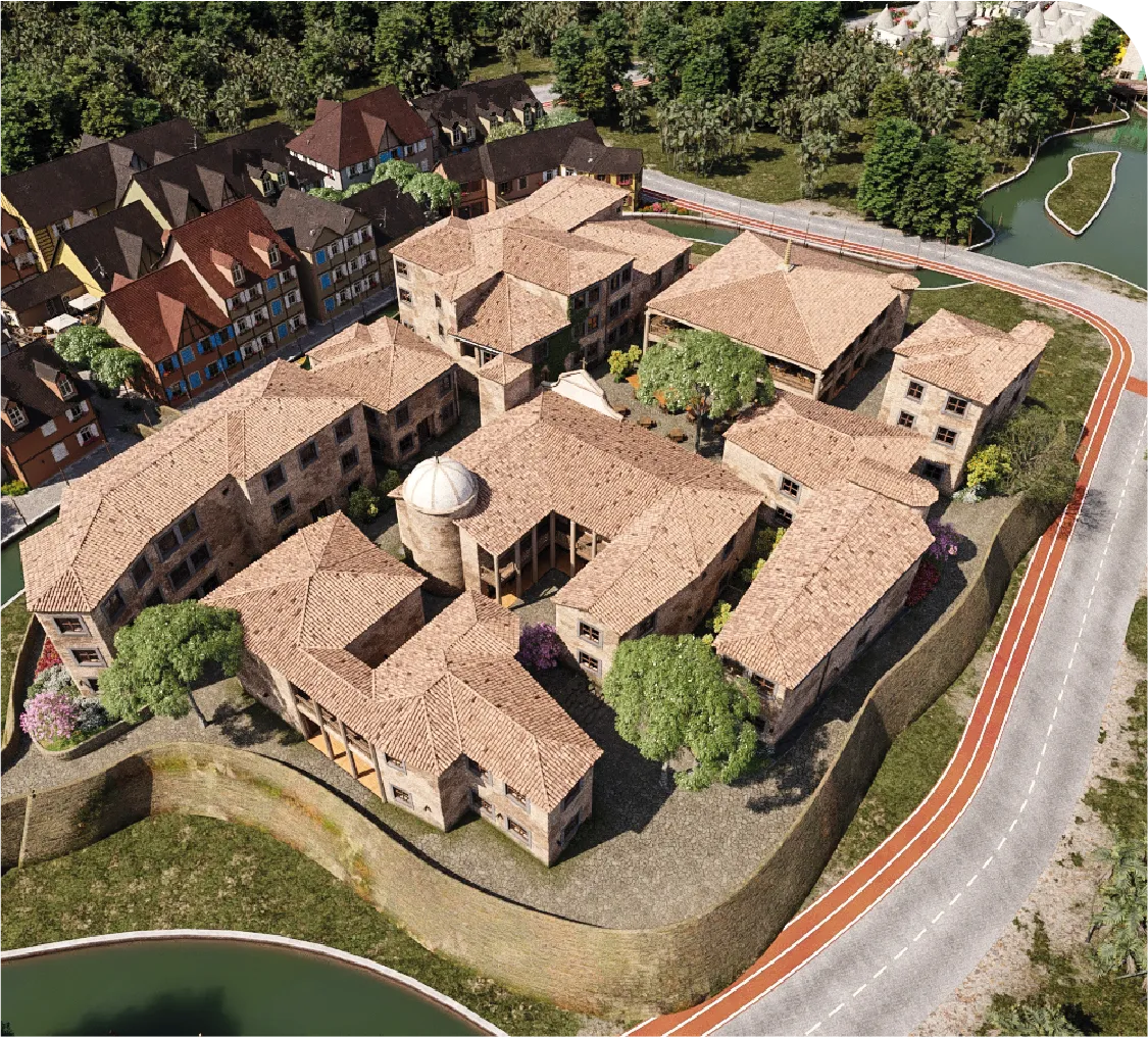A vila terá 54 apartamentos inspirados na mítica Civita di Bagnoregio, conhecida por
