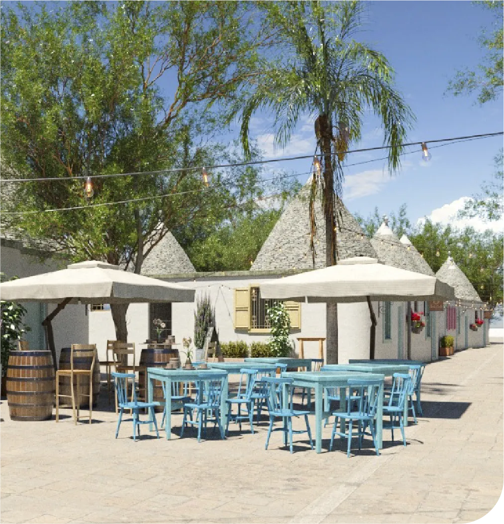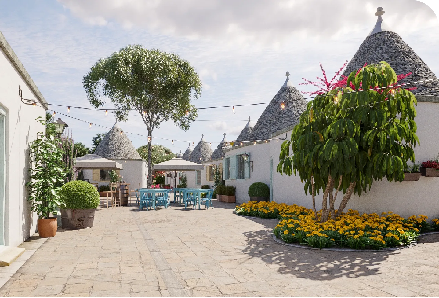 Imagine-se vivendo em uma autêntica vila italiana, com telhados cônicos e símbolos que trazem prosperidade. Nossa vila Alberobello é uma oportunidade única de experimentar a autenticidade italiana no Brasil.