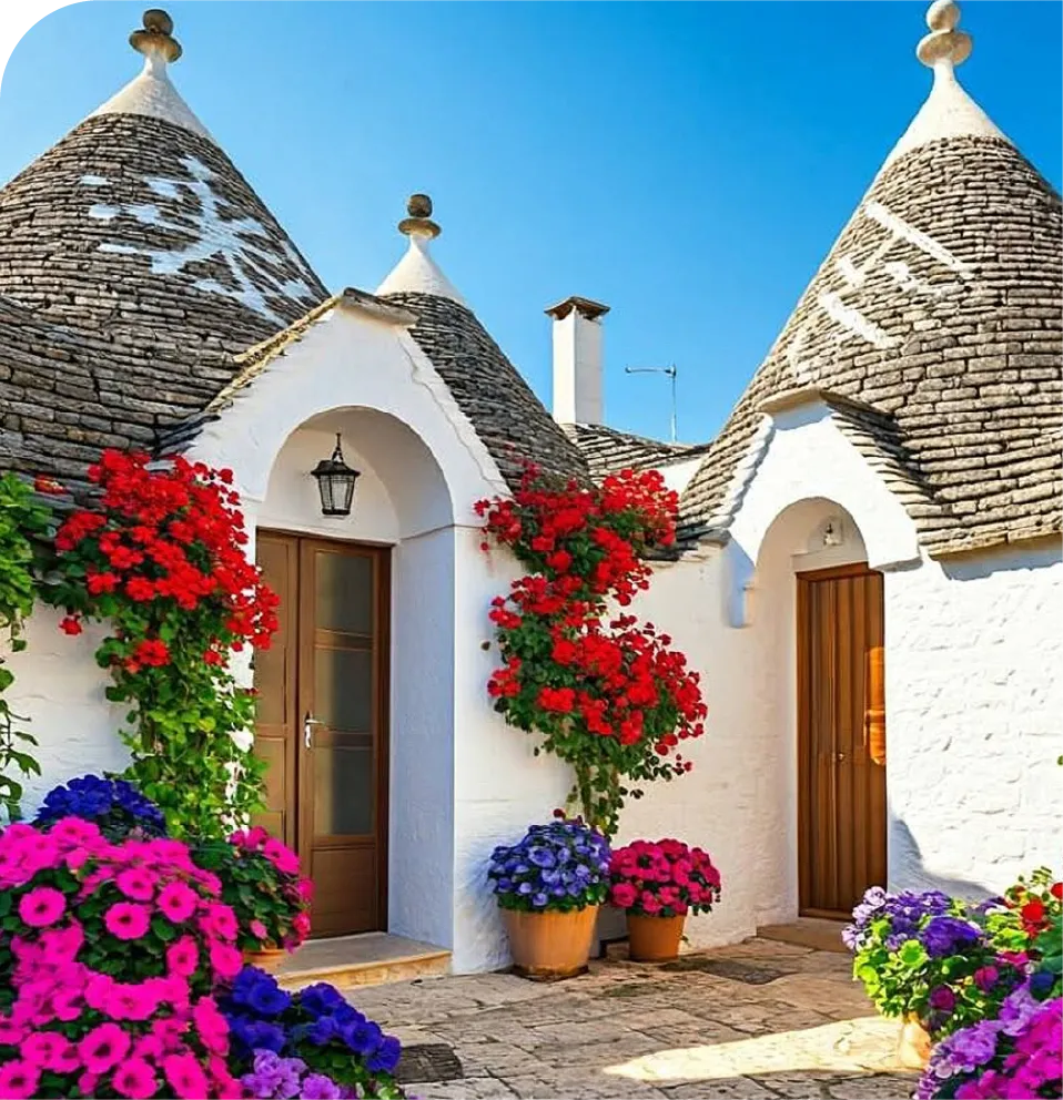 Curiosidade: Alberobello também é conhecida por seus festivais religiosos, incluindo a Festa de São Cosme e Damião em setembro, que apresenta procissões e celebrações religiosas ao longo de três dias.