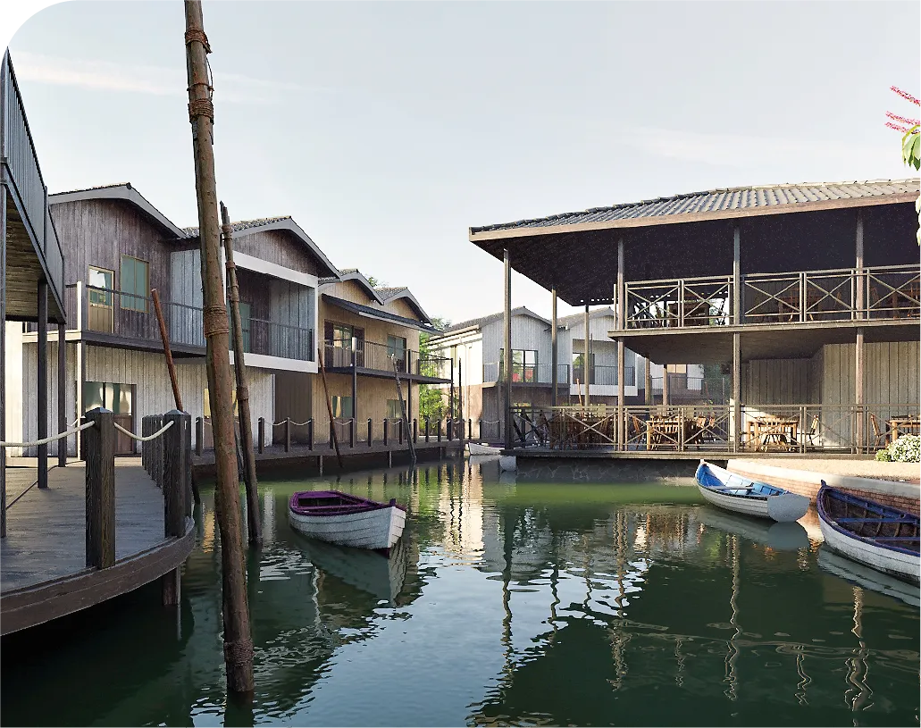 A vila de Funaya terá 18 apartamentos exclusivos. Inspirada nas históricas casas japonesas de Ine construídas ao longo da